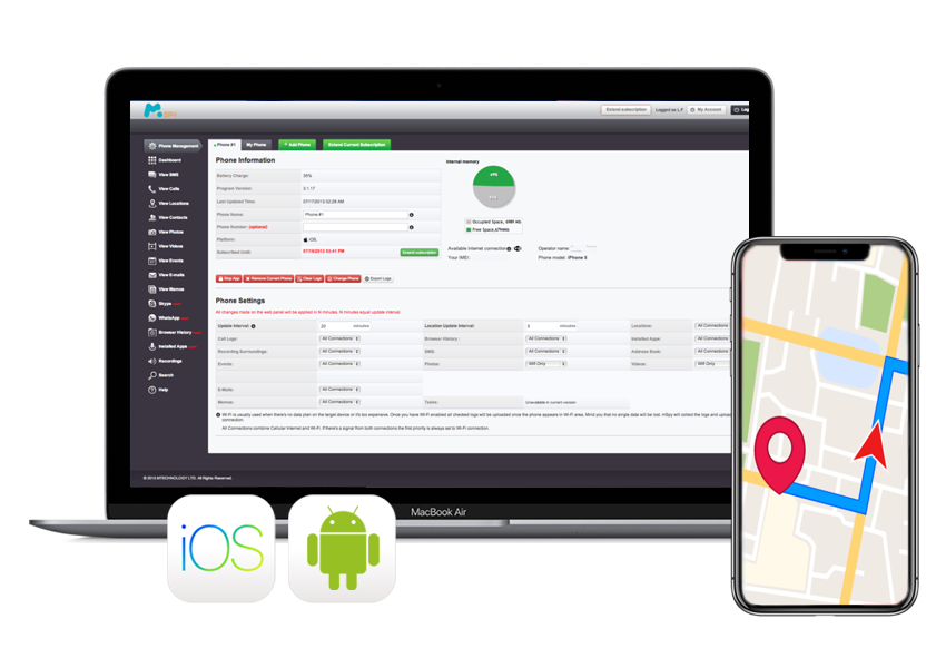 Our spyware makes it possible to monitor location even if GPS is not active on phone. Location tracking is supported on all phones. Export paths for use in other applications like Google Maps.